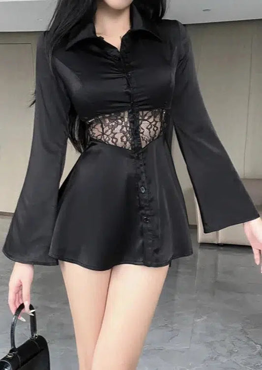 Black Silky Shirt Dress