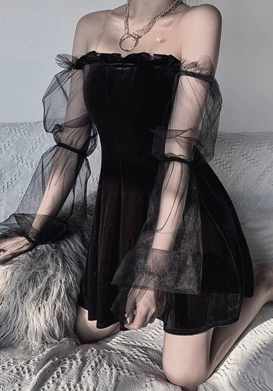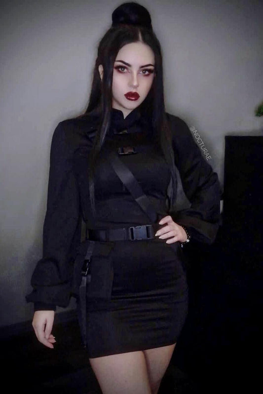 Chic Goth Vintage Style Pleated Dress