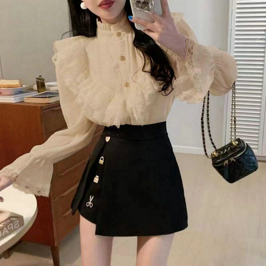 Casual Frill Long Sleeve Black Dress