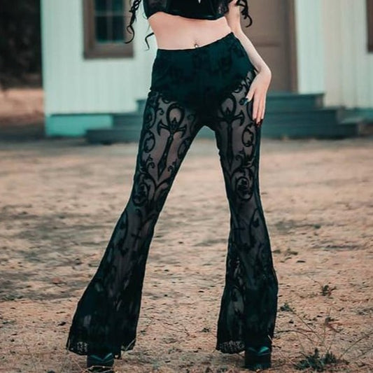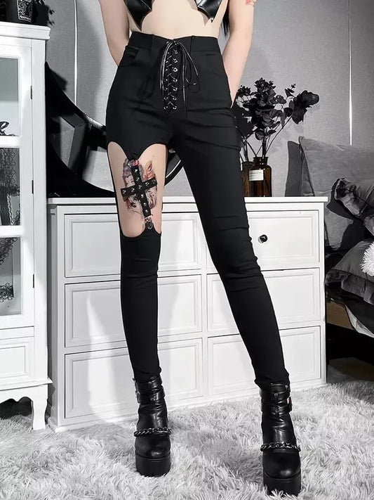 Gothic Hollow Out Black Sexy Slim Pants