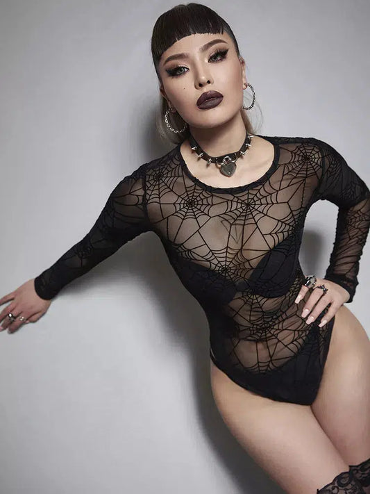 Gothic Spider Web Long Sleeve Bodycon